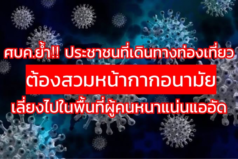 | • ศบค.ย้ำ ประชาชนที่เดินทางท่องเที่ยว ต้องสวมหน้ากากอนามัย เลี่ยงไปในพื้นที่ผู้คนหนาแน่นแออัด |