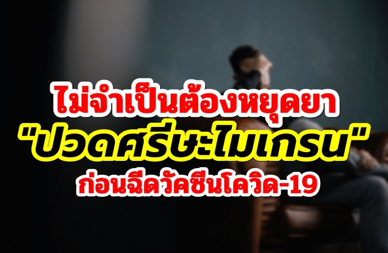 3. หากยังมีความกังวลใจ และต้องการหยุดยาแก้ปวดไมเกรนหรือยาป้องกันไมเกรน ให้ปรึกษาแพทย์ที่รักษา เพื่อวางแผนในการฉีดวัคซึนโควิด -19 และแนะนำอาการของโรคปวดศีรษะไมเกรนที่อาจจะเกิดขึ้น