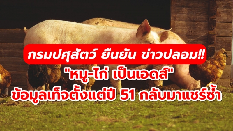 กรมปศุสัตว์ ยืนยัน ข่าวปลอม! "หมู-ไก่ เป็นเอดส์" ข้อมูลเท็จตั้งแต่ปี 51 กลับมาแชร์ซ้ำ