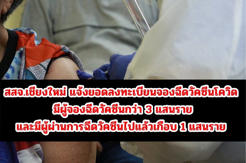 สสจ.เชียงใหม่ แจ้งยอดลงทะเบียนจองฉีดวัคซีนโควิด-19 ล่าสุด มีผู้จองฉีดวัคซีนกว่า 3 แสนราย และมีผู้ผ่านการฉีดวัคซีนไปแล้วเกือบ 1 แสนราย
