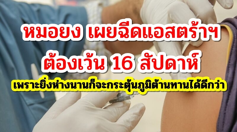 | • หมอยง เผยฉีดแอสตร้าฯ ต้องเว้น 16 สัปดาห์ เพราะยิ่งห่างนานก็จะกระตุ้นภูมิต้านทานได้ดีกว่า |