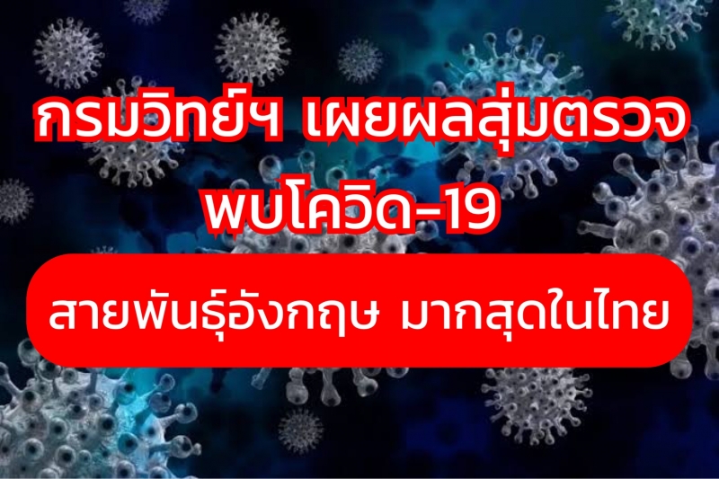 ทั้งนี้จากการสุ่มตรวจเฝ้าระวังสายพันธุ์เชื้อไวรัสซาร์-โค-วี-2 (SARS-CoV-2) ตั้งแต่เดือนเมษายน –มิถุนายน 2564 รวมจำนวน 4,185 ราย พบว่า สายพันธุ์อัลฟา (อังกฤษ) มีการพบมากที่สุดในประเทศไทย จำนวน 3,703 ราย คิดเป็นร้อยละ 88.48 รองลงมาคือ สายพันธุ์เดลตา (อินเดีย) จำนวน 348 ราย คิดเป็นร้อยละ 8.32 สายพันธุ์ดั้งเดิม (B.1 (dade G), B.1 (dade GH), B.1.1.1 (dade GR) จำนวน 98 ราย คิดเป็นร้อยละ 2.34 สายพันธุ์เบตา (แอฟริกาใต้) จำนวน 26 ราย คิดเป็นร้อยละ 0.62 และสายพันธุ์ B.1.524 จำนวน 10 ราย คิดเป็นร้อยละ 0.24 ซึ่งข้อมูลต่างๆ นี้มีการประสานรายงานไปยังหน่วยงานต่าง ๆ เพื่อใช้ในการควบคุมเฝ้าระวังในพื้นที่ต่อไป
