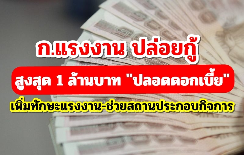 ก.แรงงาน ปล่อยกู้สูงสุด 1 ล้านบาท "ปลอดดอกเบี้ย" เพิ่มทักษะแรงงาน-ช่วยสถานประกอบกิจการ