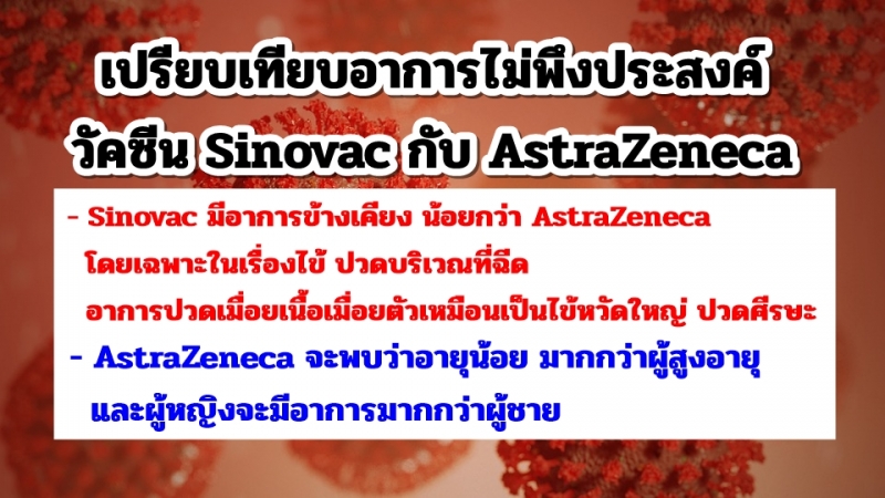 | • เปรียบเทียบอาการไม่พึงประสงค์ วัคซีน Sinovac กับ AstraZeneca ต่างกันชัดเจน |