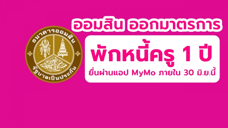 ออมสิน ออกมาตรการ พักหนี้ครูและบุคลากรการศึกษา 1 ปี แจ้งเข้าร่วมผ่านแอป MyMo ถึง 30 มิ.ย.นี้