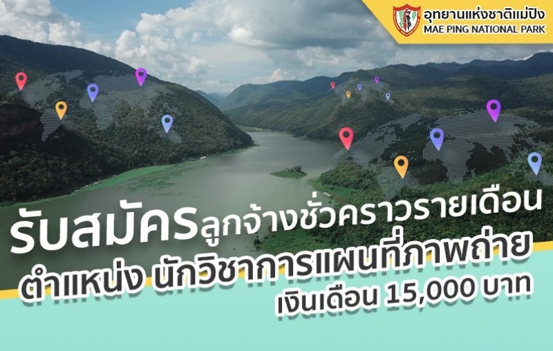 อุทยานเเห่งชาติเเม่ปิงประกาศรับสมัคร ลูกจ้างชั่วคราวรายเดือน ตำแหน่งนักวิชาการแผนที่ภาพถ่าย เงินเดือน15000
