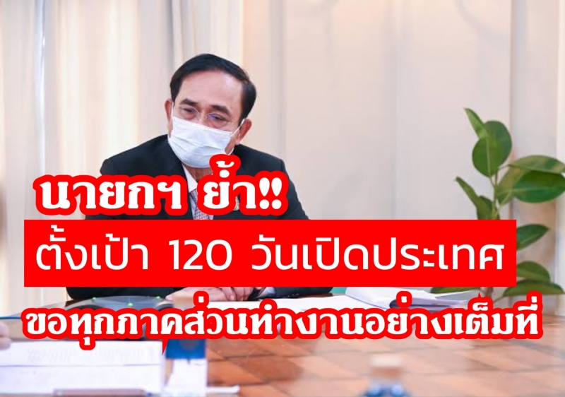 นายกฯ ย้ำ!! ตั้งเป้า 120 วันเปิดประเทศ ขอทุกภาคส่วนทำงานอย่างเต็มที่