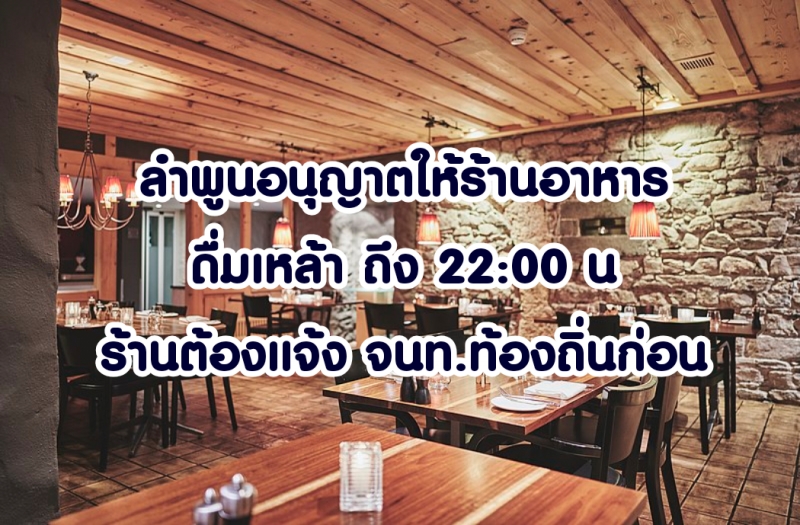 จำหน่ายและใช้สถานที่เพื่อบริโภคสุราและเครื่องดื่มที่มีแอลกอฮอล์ภายในร้าน ไม่เกินเวลา 22.00 นาฬิกา