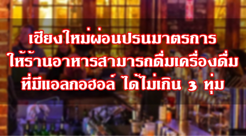 | • เชียงใหม่ผ่อนปรนมาตรการให้ร้านอาหารสามารถดื่มเครื่องดื่มที่มีแอลกอฮอล์ ได้ไม่เกิน 3 ทุ่ม |