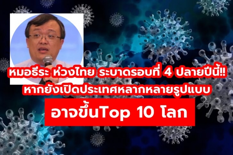 หมอธีระ ห่วงไทย ระบาดรอบที่ 4 ปลายปีนี้ หากยังเปิดประเทศหลากหลายรูปแบบ อาจขึ้นTop 10 โลก
