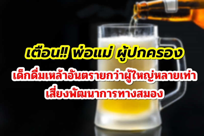 | • กรมการแพทย์ย้ำ พ่อ แม่ ผู้ปกครอง เด็กดื่มเหล้าอันตรายกว่าผู้ใหญ่หลายเท่า เสี่ยงพัฒนาการทางสมอง |