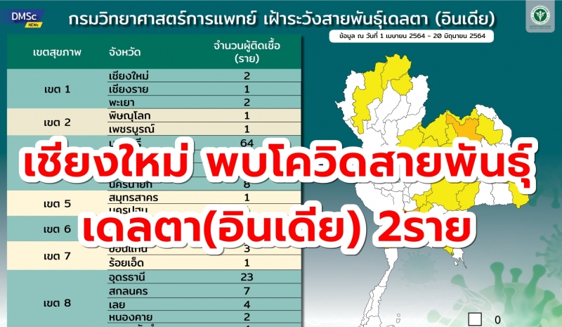 | • เชียงใหม่ พบโควิดสายพันธุ์เดลตา(อินเดีย) 2ราย |