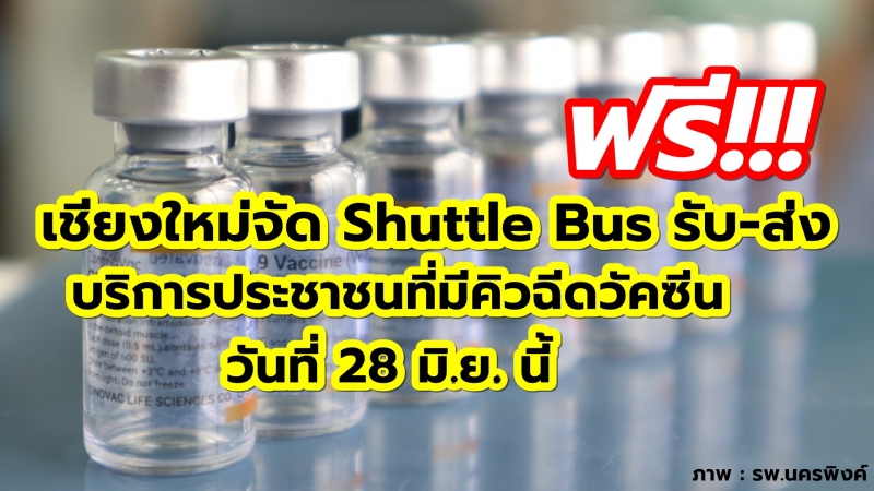 จังหวัดเชียงใหม่จัดรถ Shuttle Bus วิ่งรอบเมืองตามจุดต่าง ๆ ให้บริการประชาชนที่มีคิวฉีดวัคซีนโควิด-19 ในวันที่ 28 มิถุนายนนี้ ตามจุดฉีดสำคัญ 3 จุด โดยไม่คิดค่าบริการ