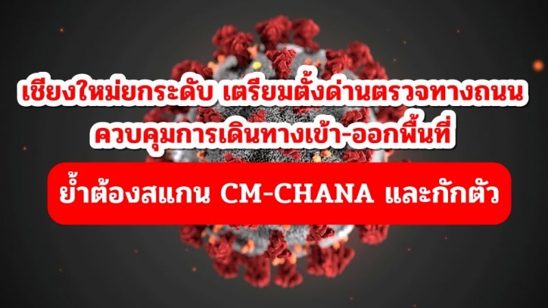 คณะกรรมการโรคติดต่อจังหวัดเชียงใหม่ ยกระดับป้องกันโรค เตรียมตั้งด่านตรวจทางถนนควบคุมการเดินทางเข้า-ออกพื้นที่ ย้ำต้องสแกน CM-CHANA ทุกคน ส่วน 10 จังหวัดสีแดงเข้ม เข้ามาต้อง Swab และกักตัว พร้อมเปิดกองร้อยอาสารักษาดินแดนให้เป็นที่กักตัวโดยไม่เสียค่าใช้จ่าย ลดการสัมผัสในครอบครัว