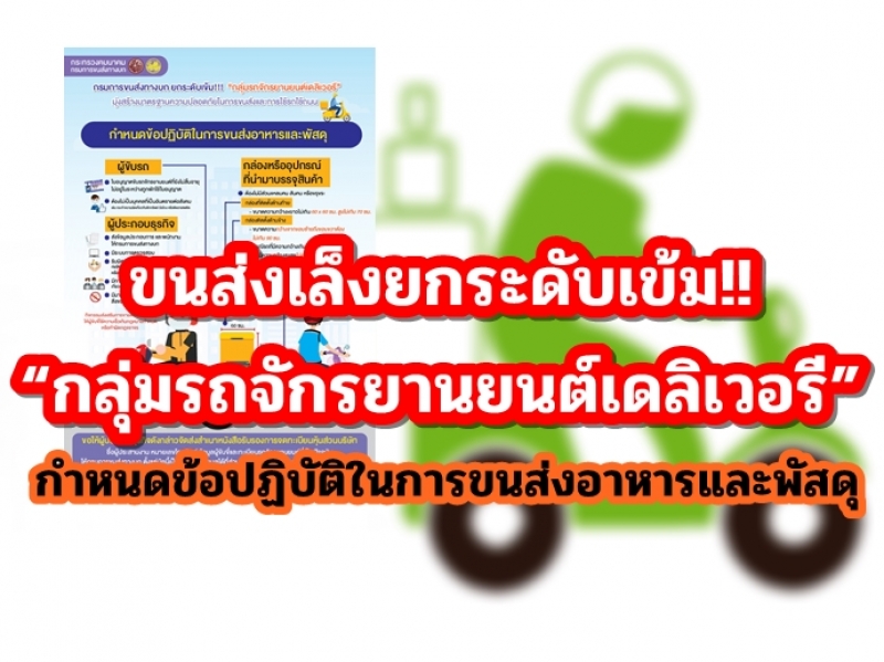 กรมการขนส่งทางบก เล็งยกระดับเข้ม!!! “กลุ่มรถจักรยานยนต์เดลิเวอรี” กำหนดข้อปฏิบัติในการขนส่งอาหารและพัสดุ มุ่งสร้างมาตรฐานความปลอดภัยในการขนส่งและการใช้รถใช้ถนน เพื่อความมั่นใจของประชาชน