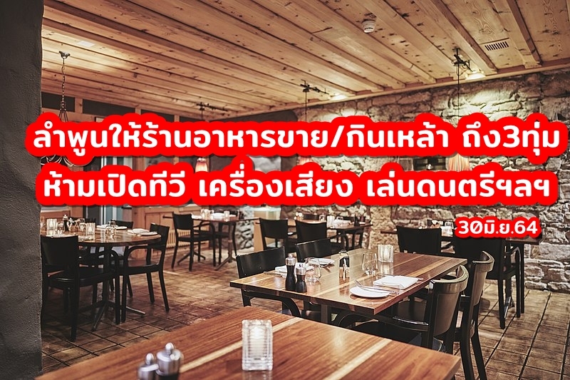 เมื่อวันที่ 30มิ.ย.64 ลำพูนได้ออกคำสั่งใหม่ เกี่ยวกับร้านอาหาร และร้านอื่นๆ ที่เกี่ยวข้อง โดยมี เนื้อหาที่สำคัญๆ ดังนี้