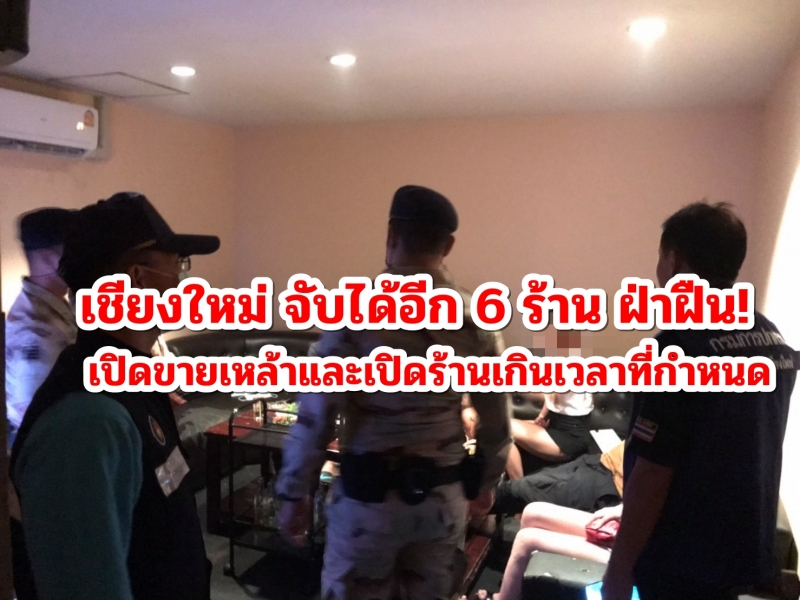 จับได้อีก 6 ร้าน โทษฐานฝ่าฝืนเปิดขายเครื่องดื่มแอลกอฮอล์และเปิดร้านเกินเวลาที่กำหนด