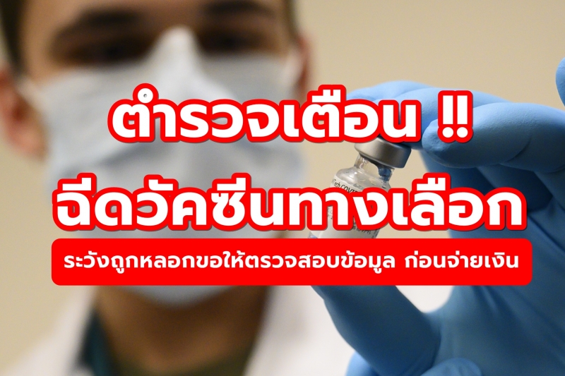ตำรวจเตือน ผู้ที่จะฉีดวัคซีนทางเลือก ระวังถูกหลอกขอให้ตรวจสอบข้อมูล ก่อนจ่ายเงิน