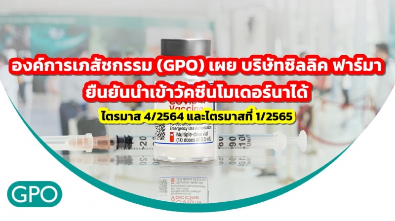 องค์การเภสัชกรรม (GPO) เผย บริษัทซิลลิค ฟาร์มา จำกัด ยืนยันนำเข้าวัคซีนโมเดอร์นาได้ในไตรมาส 4/2564 และไตรมาสที่ 1/2565