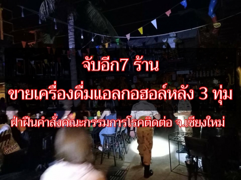 จับเพิ่มอีกคืนนี้ (เสาร์ 3 ก.ค.64) 7 ร้านอาหาร /สถานประกอบการขายเครื่องดื่มแอลกอฮอล์หลัง 3 ทุ่ม ฝ่าฝืนคำสั่งคณะกรรมการโรคติดต่อ จ.เชียงใหม่