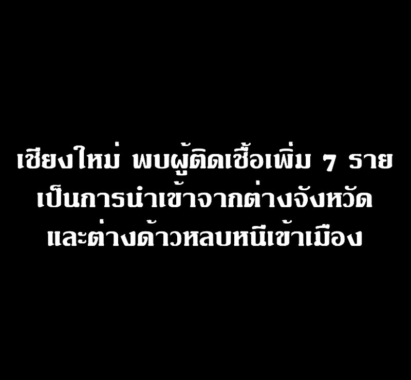 เชียงใหม่ พบผู้ติดเชื้อเพิ่ม 7 ราย พบเป็นการนำเข้าจากต่างจังหวัดและชาวต่างด้าวหลบหนีเข้าเมือง