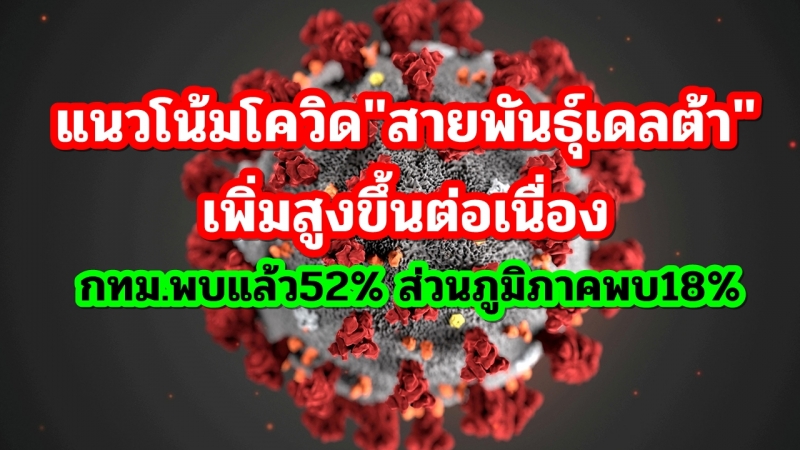 แนวโน้มโควิดสายพันธุ์เดลต้าเพิ่มสูงขึ้นต่อเนื่อง กทม.พบแล้ว52%ส่วนภูมิภาคพบ18%