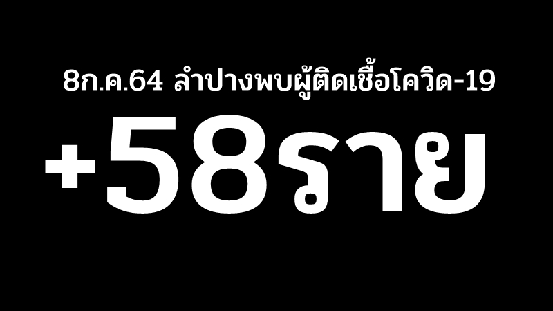 วันที่ 8 กรกฎาคม 2564 ลำปาง ข้อมูล ณ เวลา 9.00 น. มีผู้ติดเชื้อโควิด19 เพิ่มขึ้น 58 ราย  รวมมีผู้ป่วยสะสม 125 ราย (โครงการรับคนลำปางกลับบ้านสะสม 45 ราย)