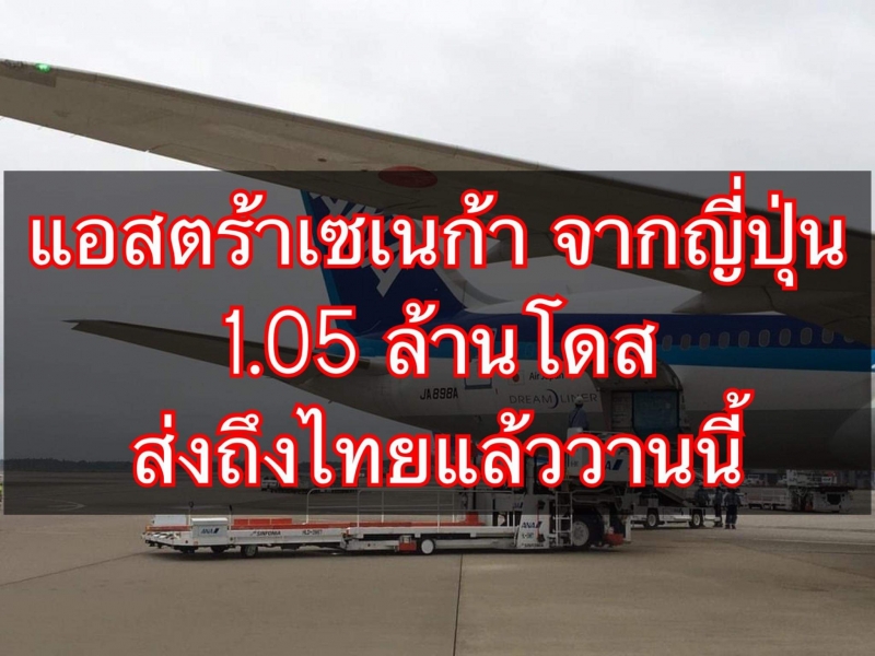 วานนี้ 9 กรกฎาคม 2564 เวลา 18.35 น.(ตามเวลาญี่ปุ่น) สายการบินเอเอ็นเอ ญี่ปุ่น เที่ยวบิน NH805 โดยเครื่องบินโบอิ้ง 787-9 ดรีมไลเนอร์ ได้ขนส่งวัคซีนป้องกันโรคระบาดโควิด-19 ยี่ห้อแอสตร้าเซเนก้าบรรจุใน 14 ตู้ รวมทั้งสิ้น 1,050,000 โดส ออกเดินทางจากสนามบินนานาชาติ นาริตะ กรุงโตเกียว มาถึงท่าอากาศยานนานาชาติสุวรรณภูมิ เมื่อเวลา 23.20 น.