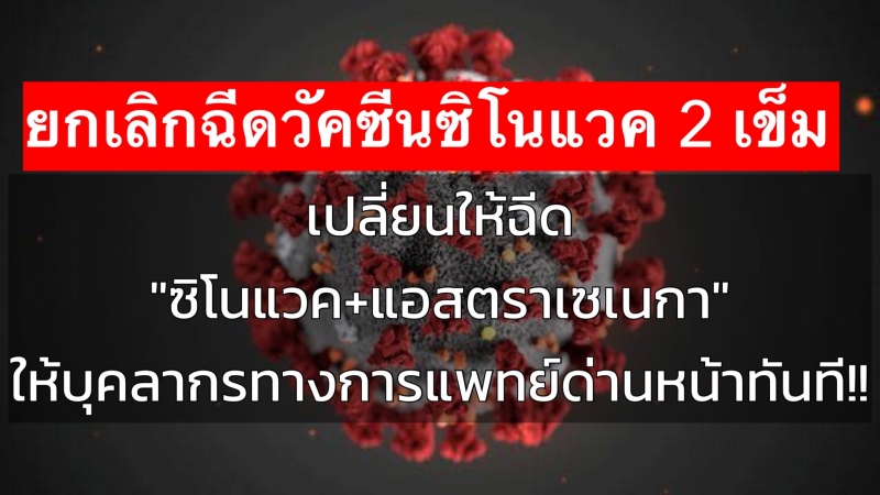| • ด่วน!! ให้ฉีด AZ เป็นเข็มที่2 ต่อจากSV ให้บุคลากรทางการแพทย์ด่านหน้าทันที |