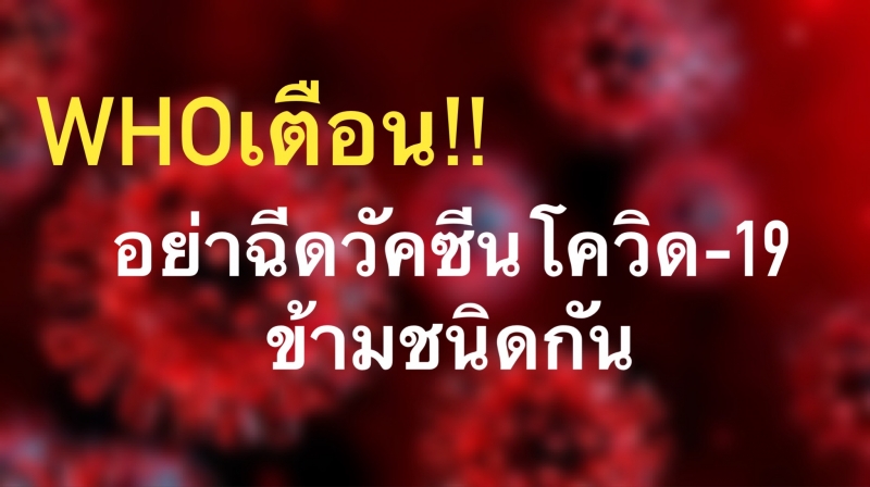 WHOเตือน อย่าฉีดวัคซีนโควิด-19 ข้ามชนิดกัน ในขณะที่ยังไม่แน่ใจในเรื่องความปลอดภัยและประสิทธิภาพ