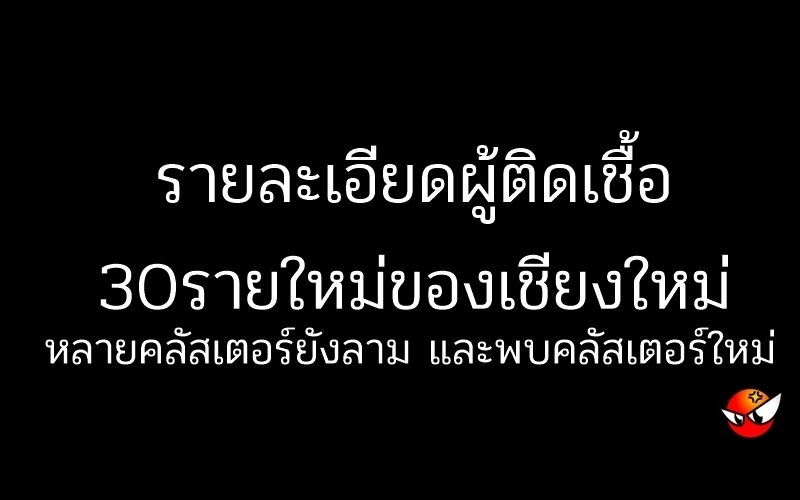 | • รายละเอียดผู้ติดเชื้อ 30รายใหม่ของเชียงใหม่ หลายคลัสเตอร์ยังลาม และพบคลัสเตอร์ใหม่ |