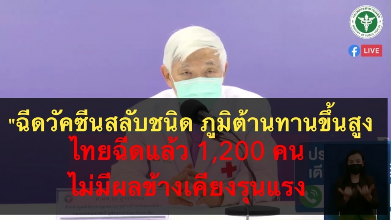 นพ.ยง เผย ไทยมีคนฉีดวัคซีนสลับยี่ห้อแล้วมากกว่า 1,200 คน ภูมิต้านทานขึ้นสูง ในเวลารวดเร็วเพียง 6 สัปดาห์ ไม่มีผลข้างเคียงรุนแรง