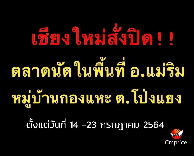 | • ปิดหมู่บ้านกองแหะ ต.โป่งแยง และปิดตลาดนัดในพื้นที่ อ.แม่ริม 14วัน |