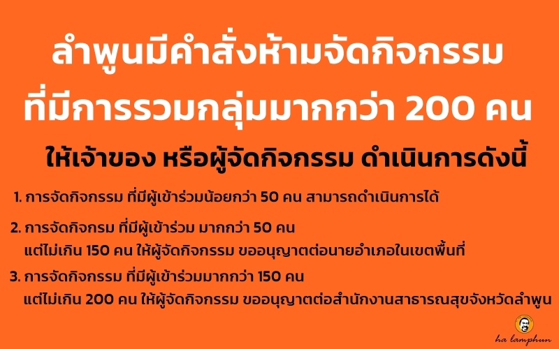 ลำพูน ห้าม จัดกิจกรรม ที่มีการรวมกลุ่มมากกว่า 200 คน