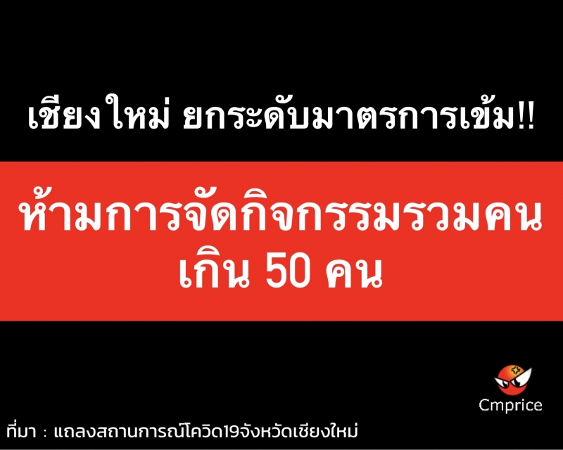 | • เชียงใหม่ ยกระดับมาตรการเข้มห้ามการจัดกิจกรรมรวมคนเกิน 50 คน |