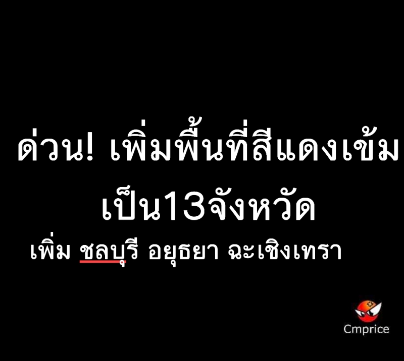 | • ด่วน! เพิ่มพื้นที่สีแดงเข้มเป็น13จังหวัด ส่วน เชียงใหม่-ลำพูนปรับเป็นสีแดง |