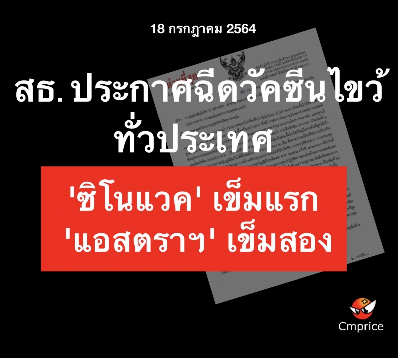 สธ. ประกาศฉีดวัคซีนไขว้ 'ซิโนแวค' เข็มแรก และ 'แอสตราฯ' เข็มสอง ทั่วทั้งประเทศ