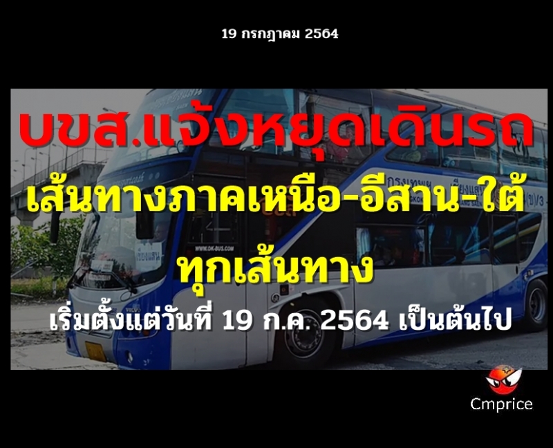 บขส.แจ้งหยุดเดินรถเส้นทางภาคเหนือ-อีสาน-ใต้ ทุกเส้นทาง เริ่มตั้งแต่วันที่ 19 ก.ค. 2564 เป็นต้นไป