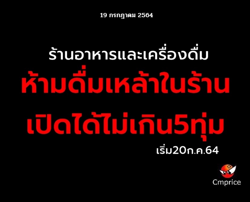 | • ยกระดับเข้ม ห้าม!ดื่มสุราในร้านและพื้นที่ต่อเนื่อง และให้เปิดร้านได้ถึงห้าทุ่ม |