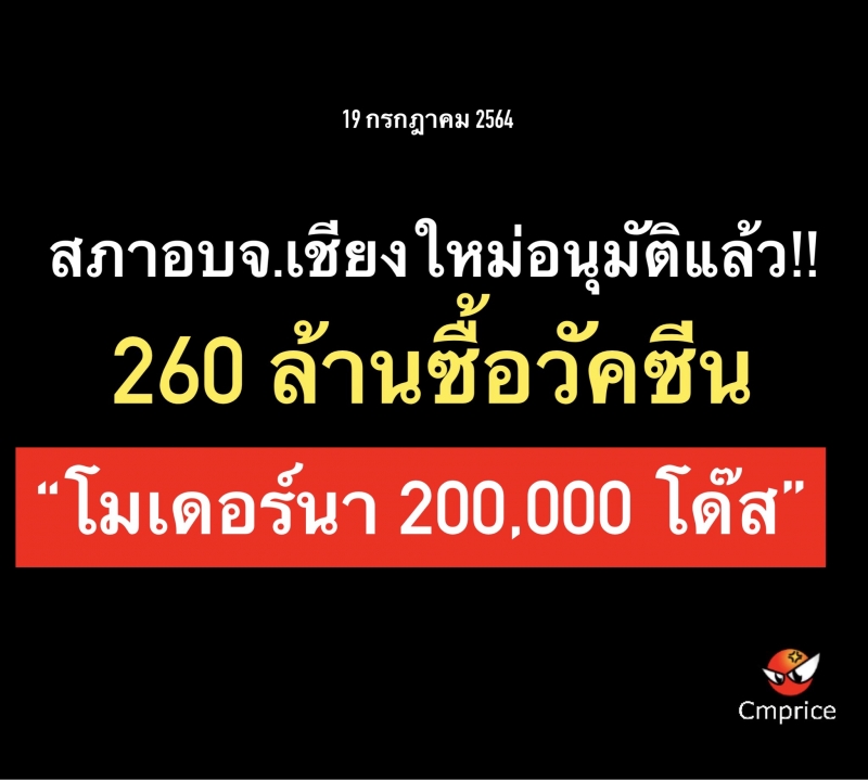 | • สภาอบจ.เชียงใหม่อนุมัติแล้ว!! 260 ล้านซื้อวัคซีนโมเดอร์นา 200,000 โด๊ส |