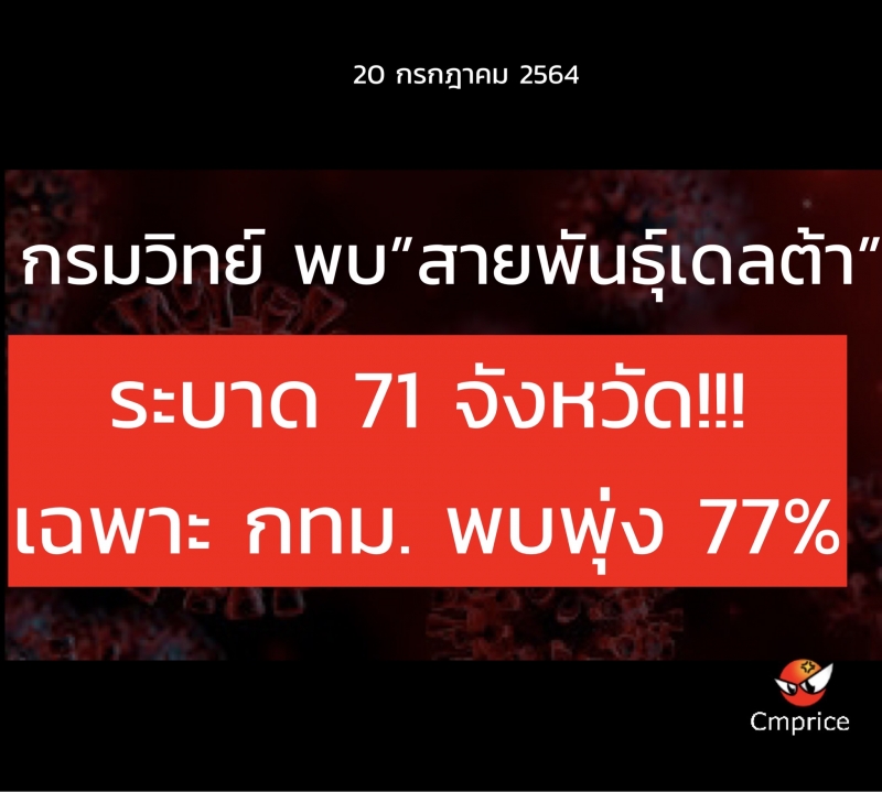 กรมวิทย์ พบสายพันธุ์เดลต้าระบาด 71 จังหวัด เฉพาะ กทม. พบพุ่ง 77%