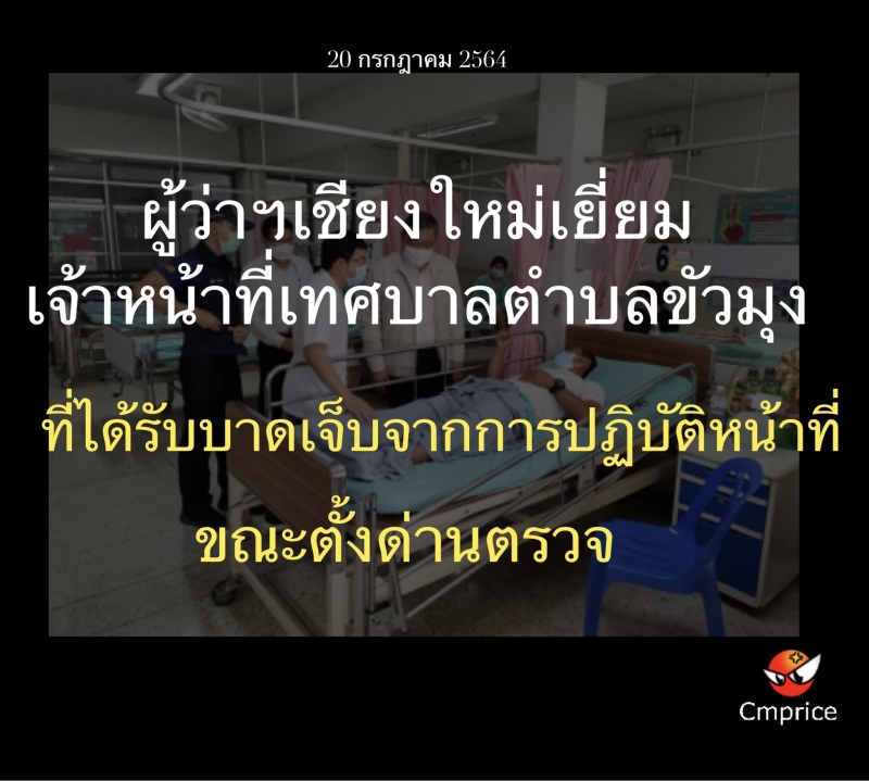 วันนี้ (21 ก.ค. 64) ที่โรงพยาบาลสารภี จังหวัดเชียงใหม่ นายเจริญฤทธิ์ สงวนสัตย์ ผู้ว่าราชการจังหวัดเชียงใหม่ เดินทางไปเยี่ยม นายสุพจน์ ศรีเผือด เจ้าหน้าที่เทศบาลตำบลขัวมุง ซึ่งได้รับบาดเจ็บจากการปฏิบัติหน้าที่ในระหว่างการตั้งด่านตรวจที่เทศบาลตำบลขัวมุง