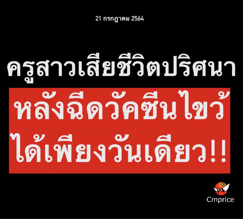 | • ครูสาวเสียชีวิตปริศนา หลังฉีดวัคซีนไขว้ได้เพียงวันเดียว!! |