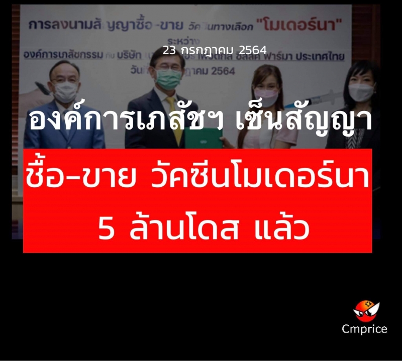 | • องค์การเภสัชฯ เซ็นสัญญาชื้อ-ขาย วัคซีนโมเดอร์นา 5 ล้านโดส แล้ว |
