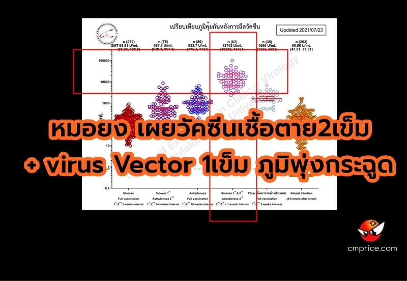 เช้าวันนี้ 24ก.ค.64 หมอยง ได้โพสต์เฟสบุ๊ค เผยว่า การฉีดวัคซีน เชื้อตาย 2เข็ม แล้วกระตุ้นด้วย วัคซีน virus Vector ภูมิต้านทานเฉลี่ยสูงขึ้นมา เฉลี่ยเป็น 10,000 หน่วย มากกว่า mRNA 2เข็ม ที่ได้1700 หน่วย และ ได้ย้ำในช่วงสุดท้ายว่า ทางศูนย์ มุ่งมั่นในการทำการศึกษาวิจัย เพื่อให้ได้ประโยชน์สูงสุดสำหรับคนไทย เป็นงานวิชาการ ไม่ได้เกี่ยวข้องกับการเมือง และนโยบายใดๆทั้งสิ้น โดยได้โพสต์ข้อความดังนี้