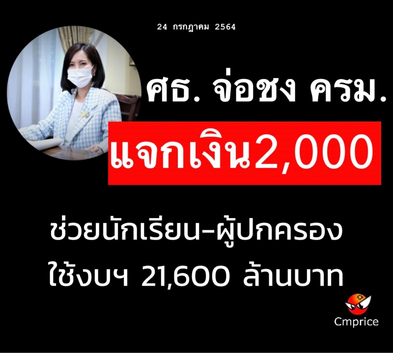| • ศธ. จ่อชง ครม. แจกเงิน2,000 ช่วยนักเรียน-ผู้ปกครองใช้งบฯ 21,600 ล้านบาท |