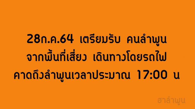 28ก.ค.64 เตรียมรับ คนลำพูนจากพื้นที่เสี่ยง เดินทางโดยรถไฟ คาดถึงลำพูนเวลาประมาณ 15:00 น