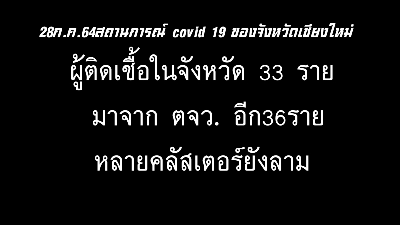 เชียงใหม่พบผู้ติดเชื้อในจังหวัด 33 รายมาจาก ตจว. อีก36 หลายคลัสเตอร์ยังราม