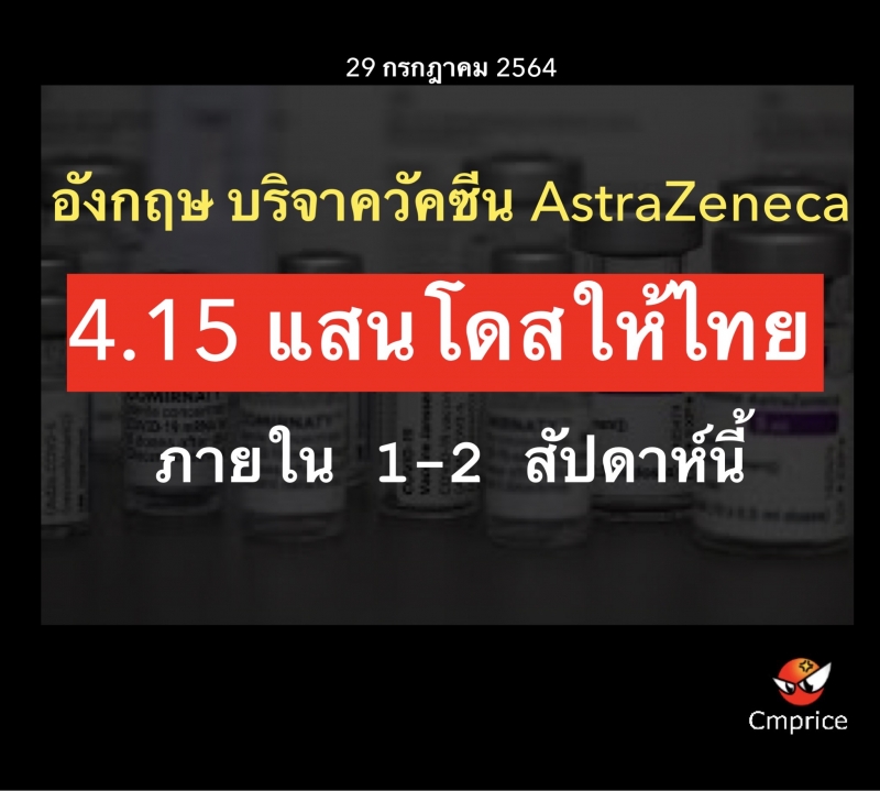 | • อังกฤษ บริจาควัคซีน 4.15 แสนโดสให้ไทย ภายใน 1-2 สัปดาห์นี้ |