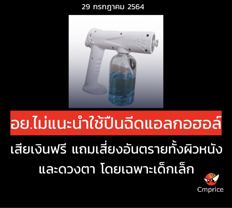 อย. ห่วงใย ไม่แนะนำให้ประชาชนใช้ปืนฉีดแอลกอฮอล์เพื่อฆ่าเชื้อโรค เสียเงินฟรีแถมได้รับอันตราย ทั้งผิวหนัง และดวงตา โดยเฉพาะเด็กเล็ก
